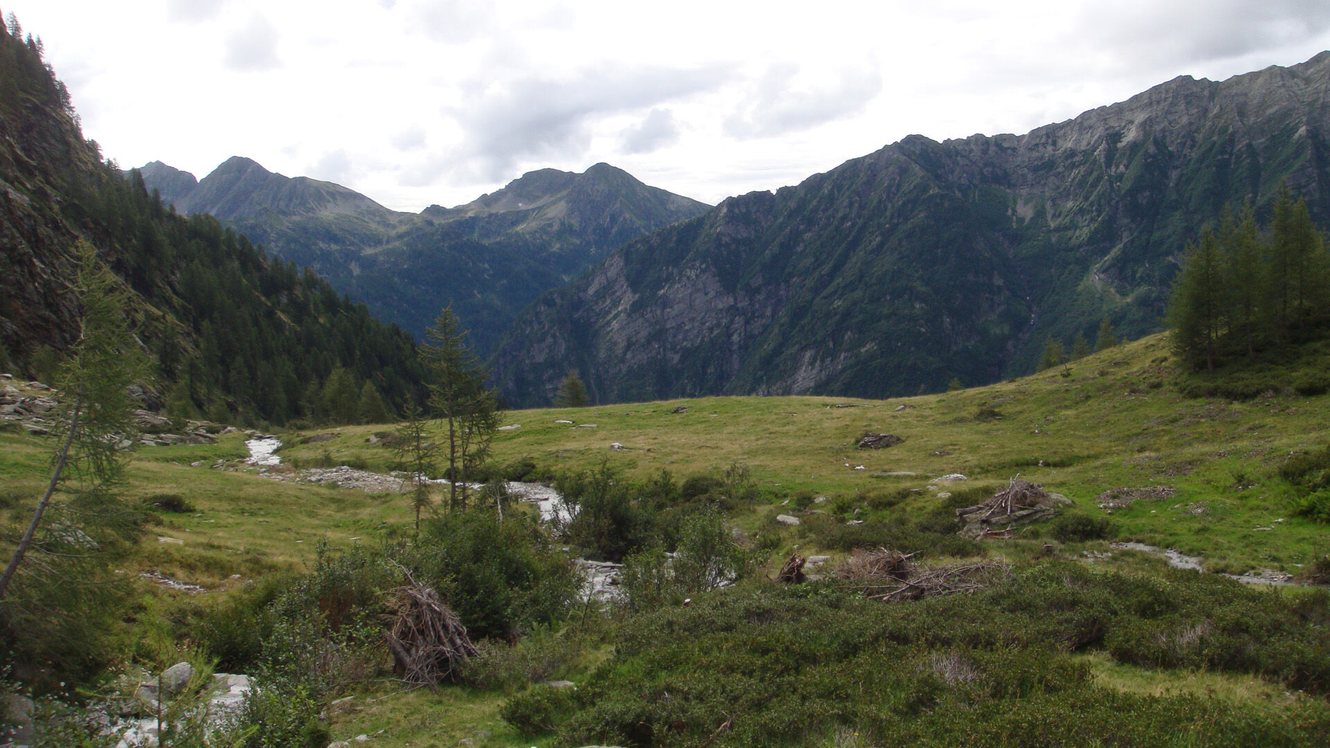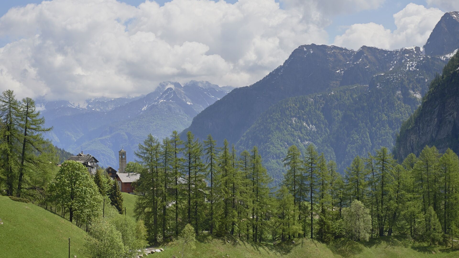 After a few minutes walking on the drivable paved road, you arrive from the characteristic village of Cimalmotto at the starting point of this route. Apart from a short initial climb, the path immediately descends to the Piano della Stufa, followed by an ascent to Alpe Magnello, with an elevation gain of 400 meters.