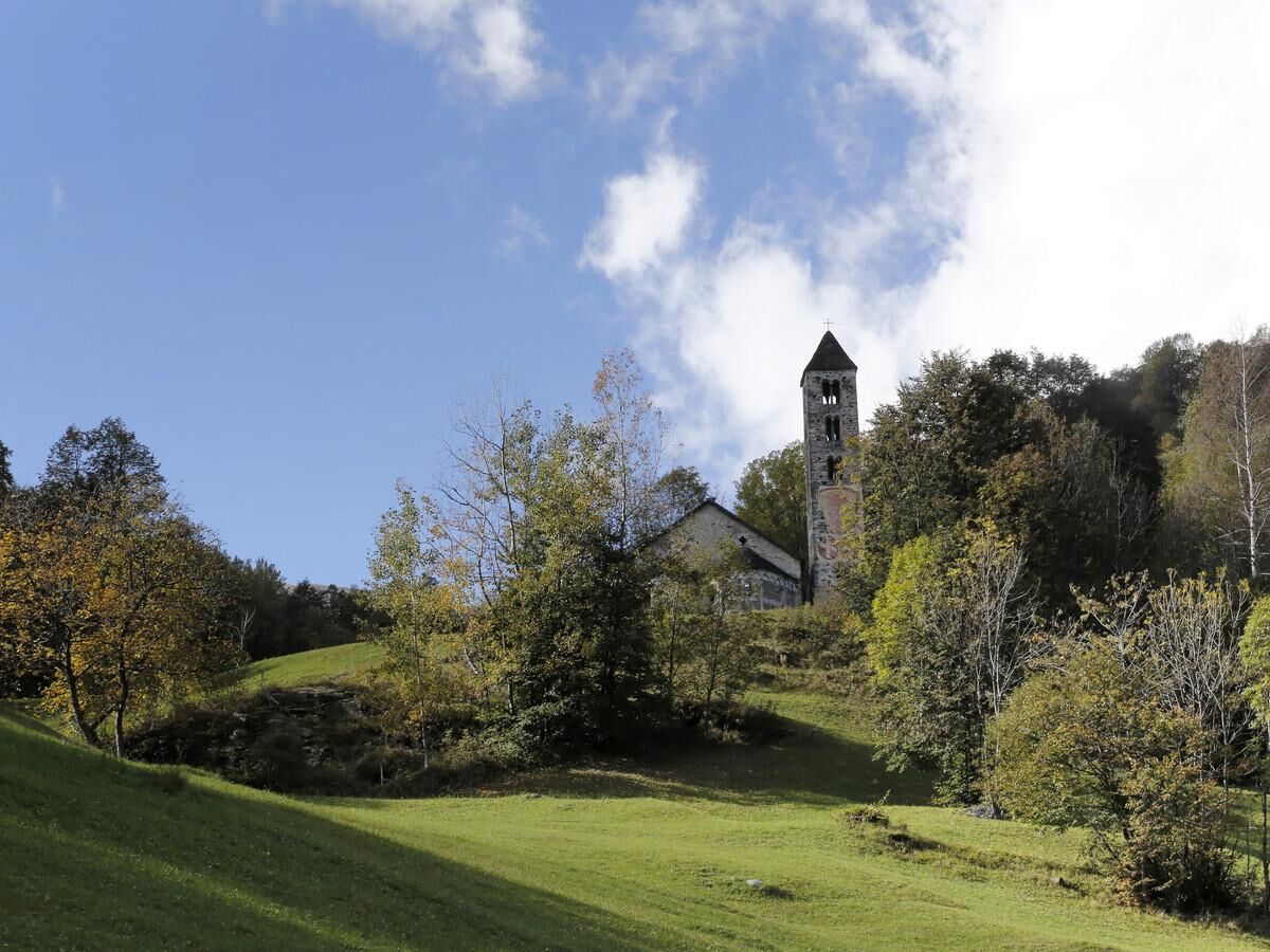 After having picked up the keys of the church that can be found in Acquarossa at the Ristorante Stazione, Ristorante Valsole or Ristorante Rubino, you start walking, through the green pastures, along the road which takes you to the Nara car park, from where you can follow the well-signed path which after an initial incline takes you down to Negrentino. A footbridge has recently been built permitting visitors easier and safer access to the church. Once you have reached the church, you can stop to admire the beauty of not only the church itself, but stunning panorama as well, which opens towards the valley floor and the majestic surrounding mountains. The path carries on downward following a signed path toward Prugiasco. Here, at the foot of the downhill section, you can take the bus to go back or you can stay a bit more for a brief, but rewarding, visit to the parish church of Sant'Ambrogio, built in 1700.