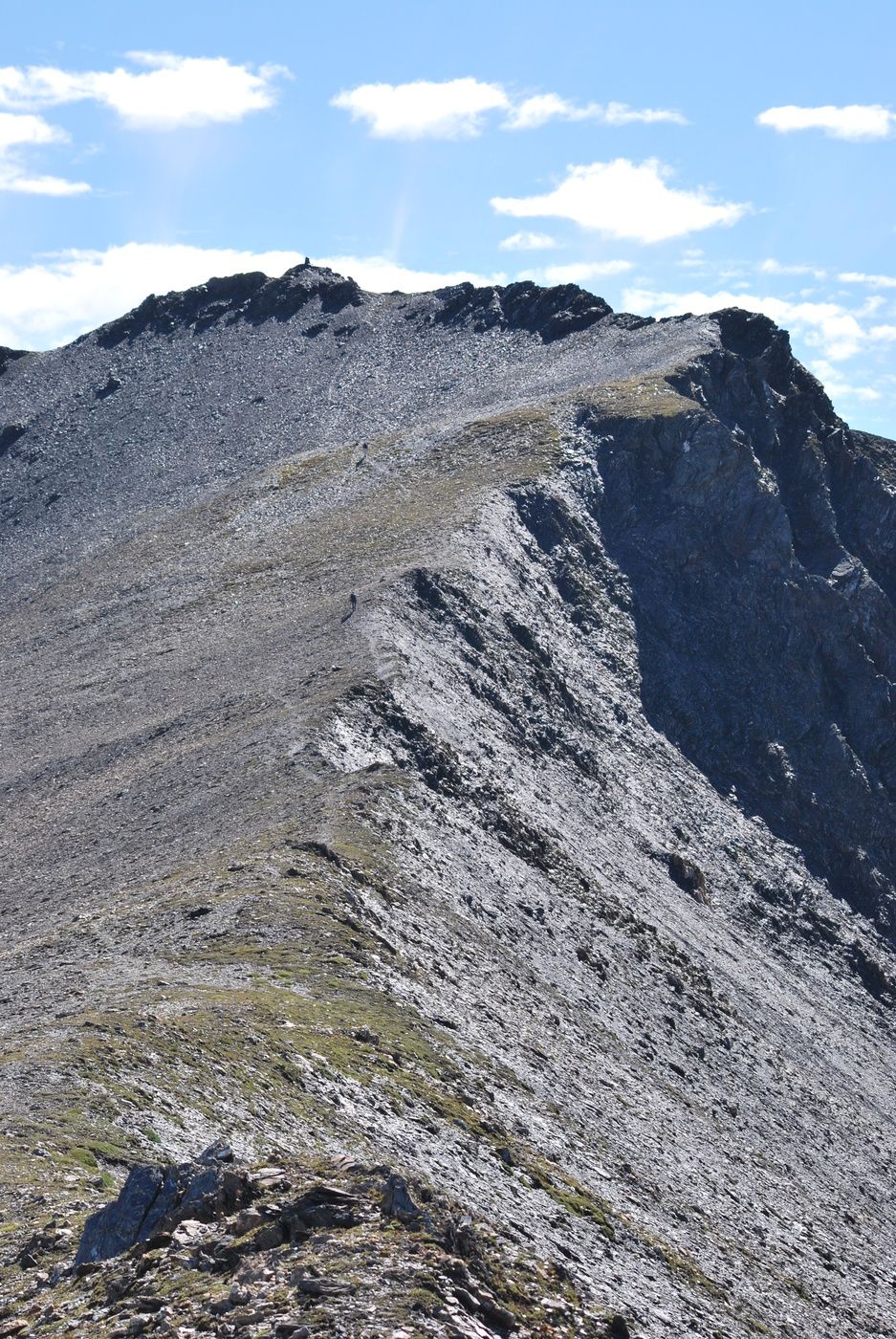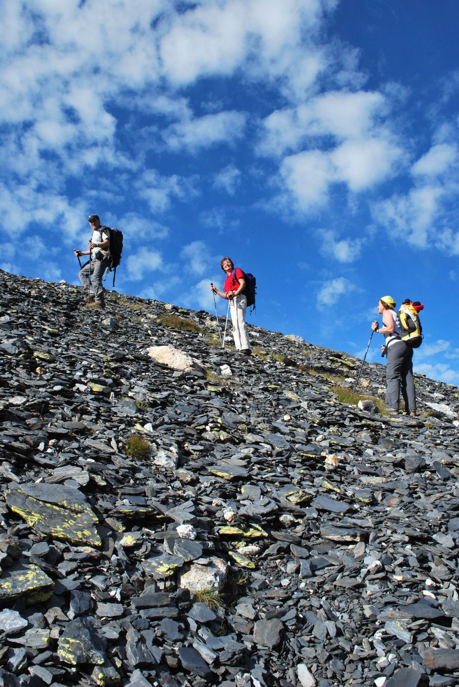 Partendo da Pian Geirett si sale alla capanna Scaletta per il sentiero largo e molto bello, si prosegue poi verso lo spartiacque della Greina e lo si supera. All'altezza delle spirali di sasso bianche (v. foto) si piega a destra iniziando la salita lungo il pendio di detriti di colore antracite. Raggiunto il culmine, un ampio pianoro dello stesso materiale, si segue la cresta fino a raggiungere la sommità. Da qui si gode una magnifica vista a 360 gradi. Per la discesa abbiamo optato per scendere dall'altro versante, puntando verso la piana della Greina, sempre ben in vista, e raggiungendo la capanna Motterascio. Da lì poi ultima ora fino all'alpe di Garzott.