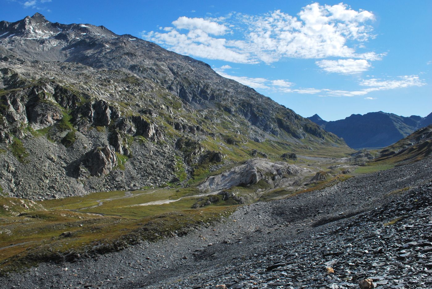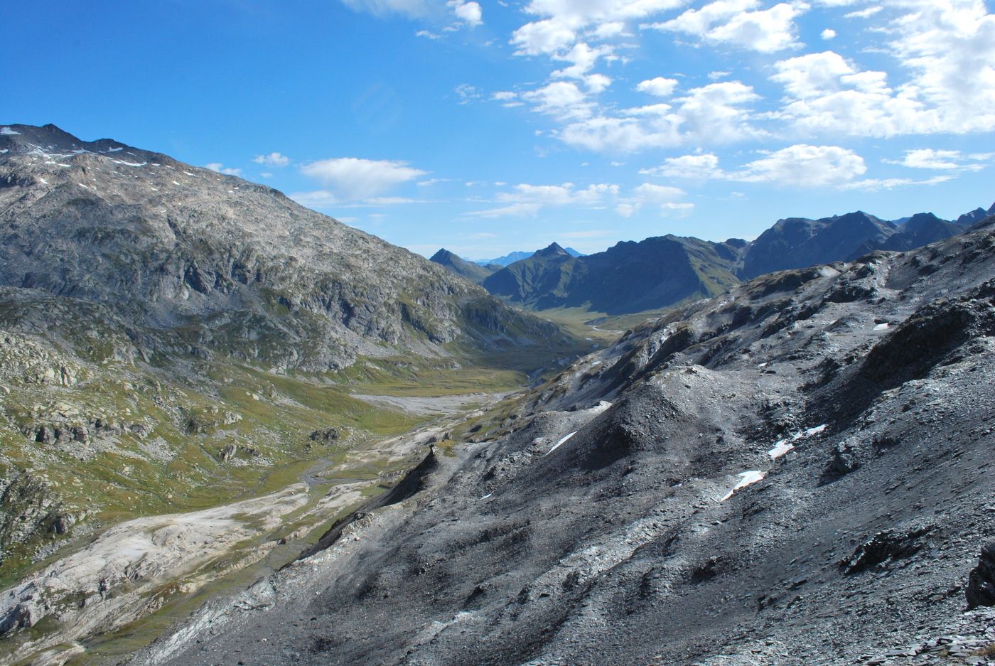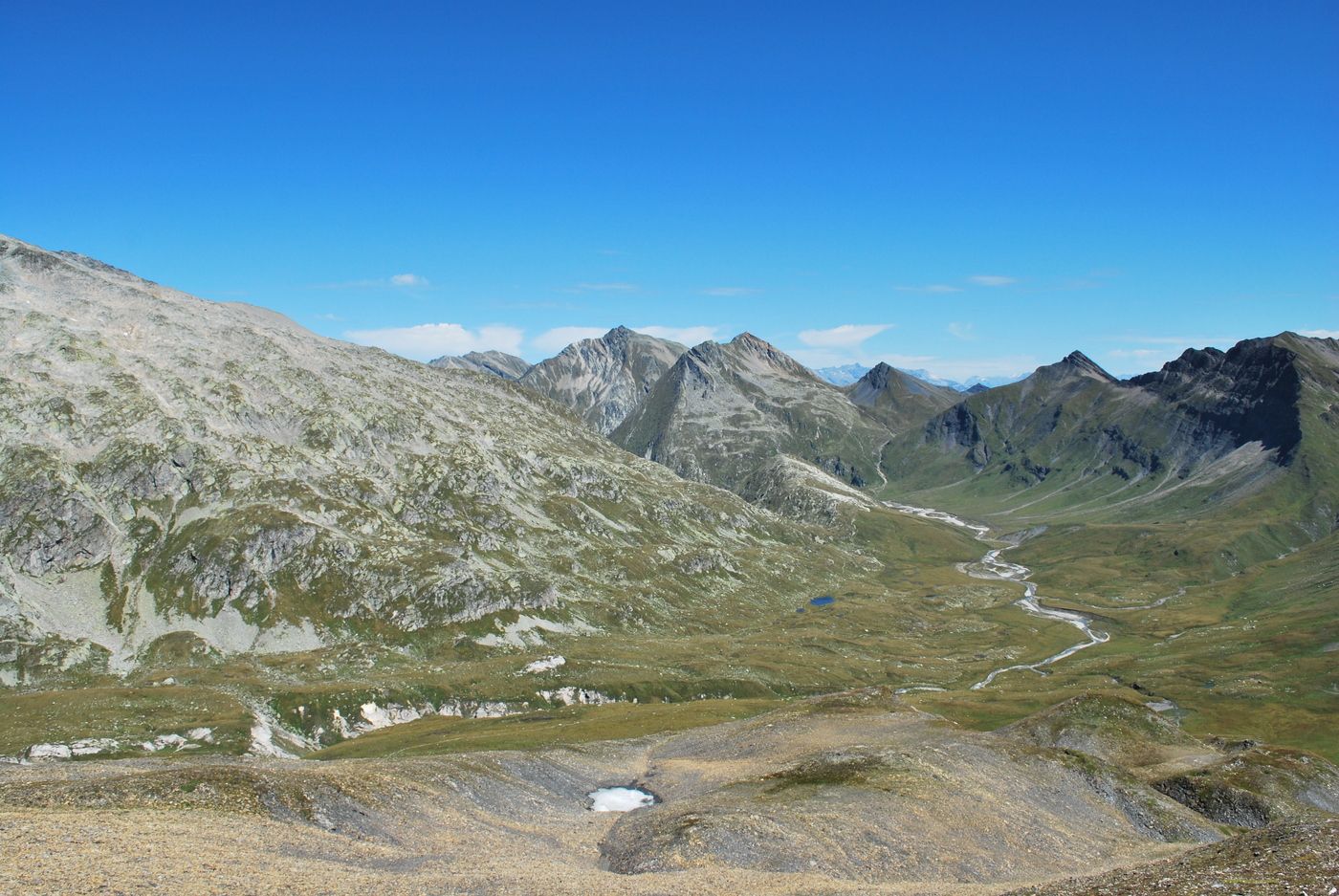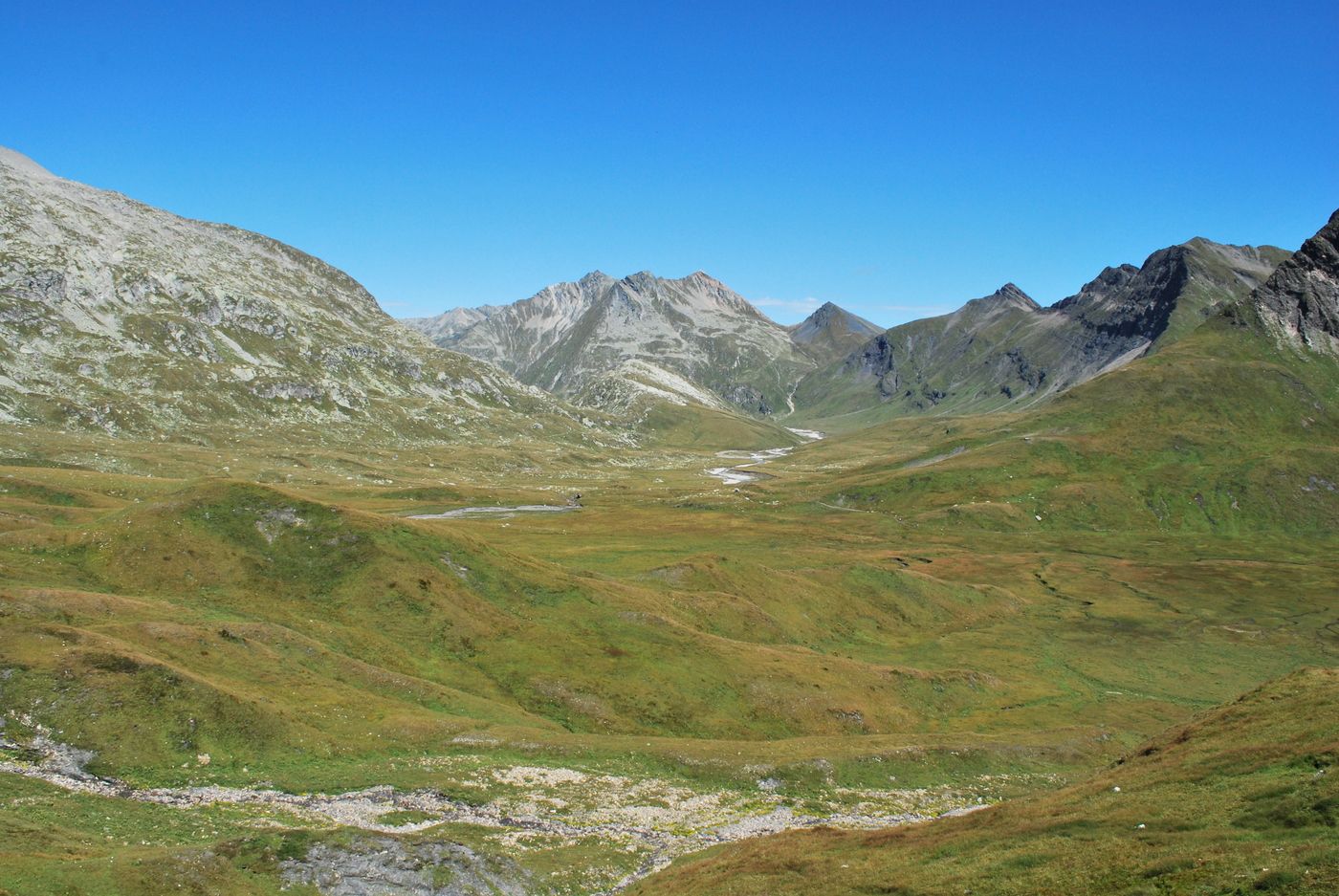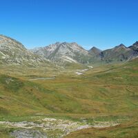 Partendo da Pian Geirett si sale alla capanna Scaletta per il sentiero largo e molto bello, si prosegue poi verso lo spartiacque della Greina e lo si supera. All'altezza delle spirali di sasso bianche...