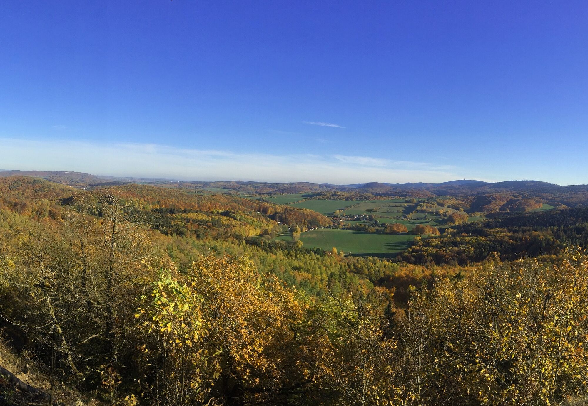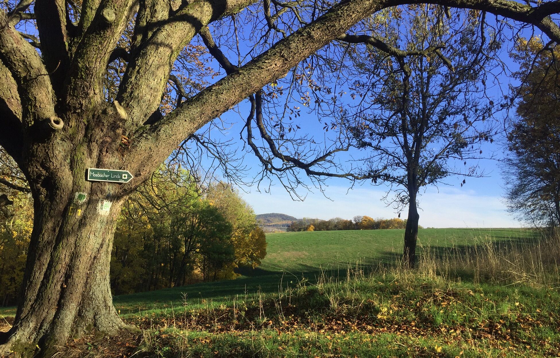 The route continues along the charming ridge path to Bornemann Bench with a great view and to the Mosbacher Linden with a shelter. There is a resting place here with a view of the Hörselberg. The route continues along the Wine Street. We pass the entrance to the Landgrafenschlucht, where there is also a shelter, and then make a detour to the Great Dragon Rock. Here you can enjoy a magnificent view. The bench around the thick tree trunk invites you to linger.