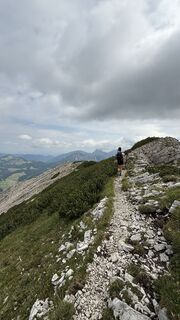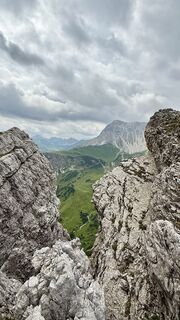 Beschilderung folgen ins Rohnenspitze, an der Gabelung geradeaus ins Pontental bis zum Zirleseck. Links halten zur Rohnenspitze mit Kraxeleinheiten und Seilversicherung. Ausgesetzte Stellen und Geröllfelder.