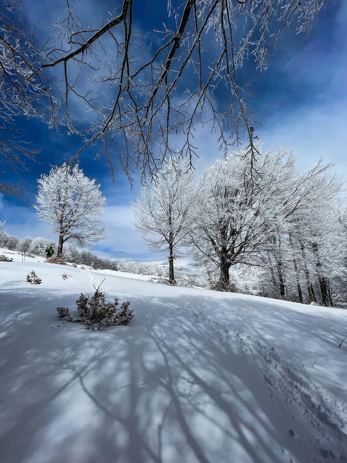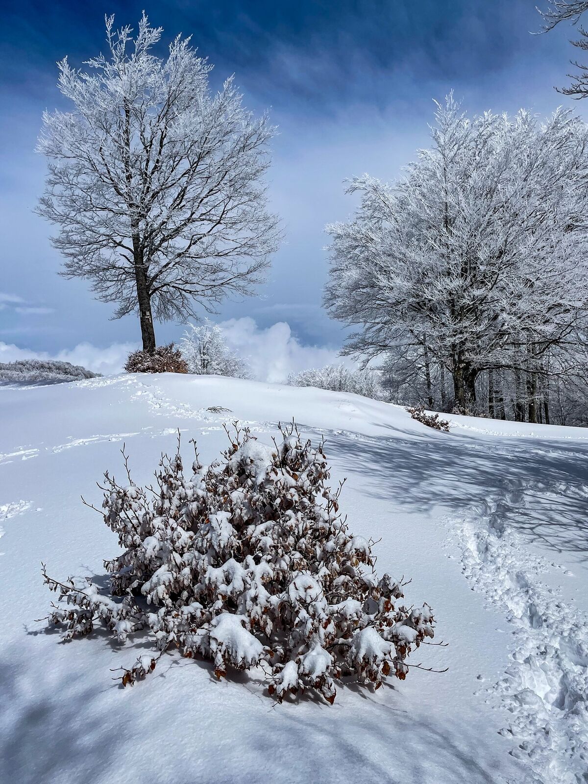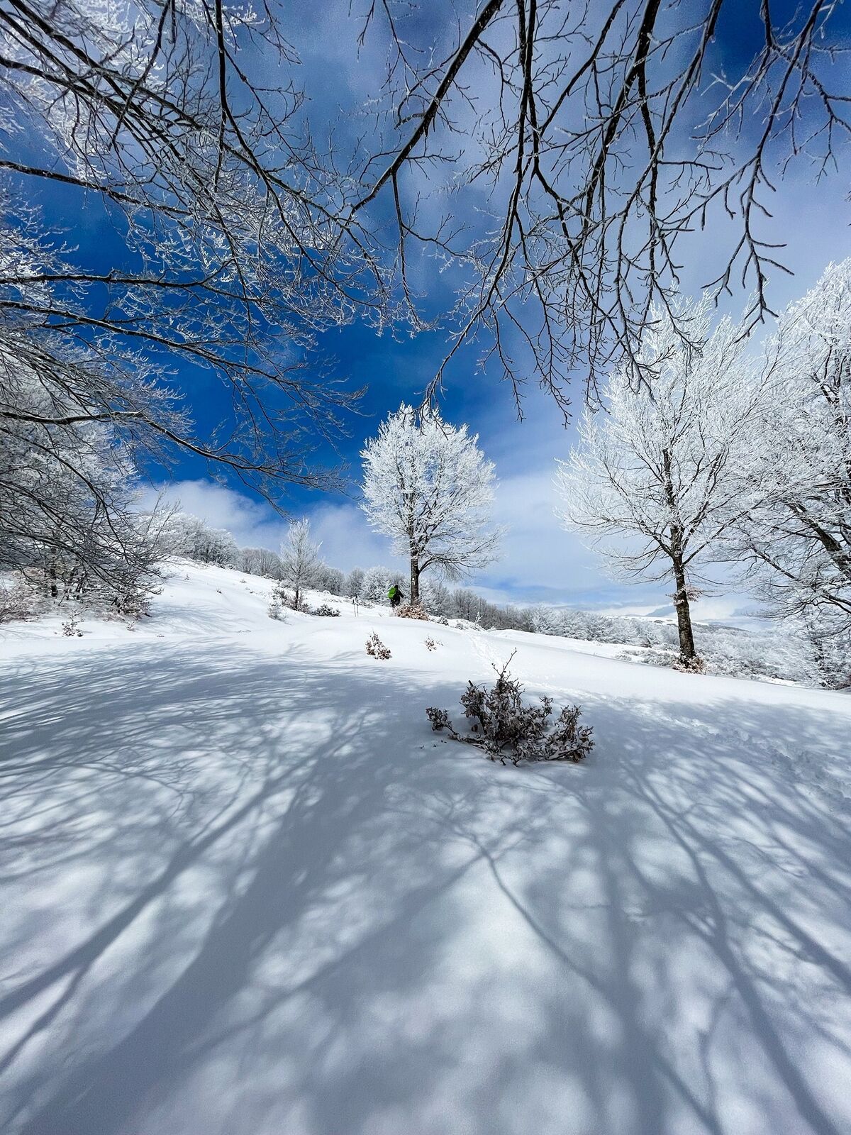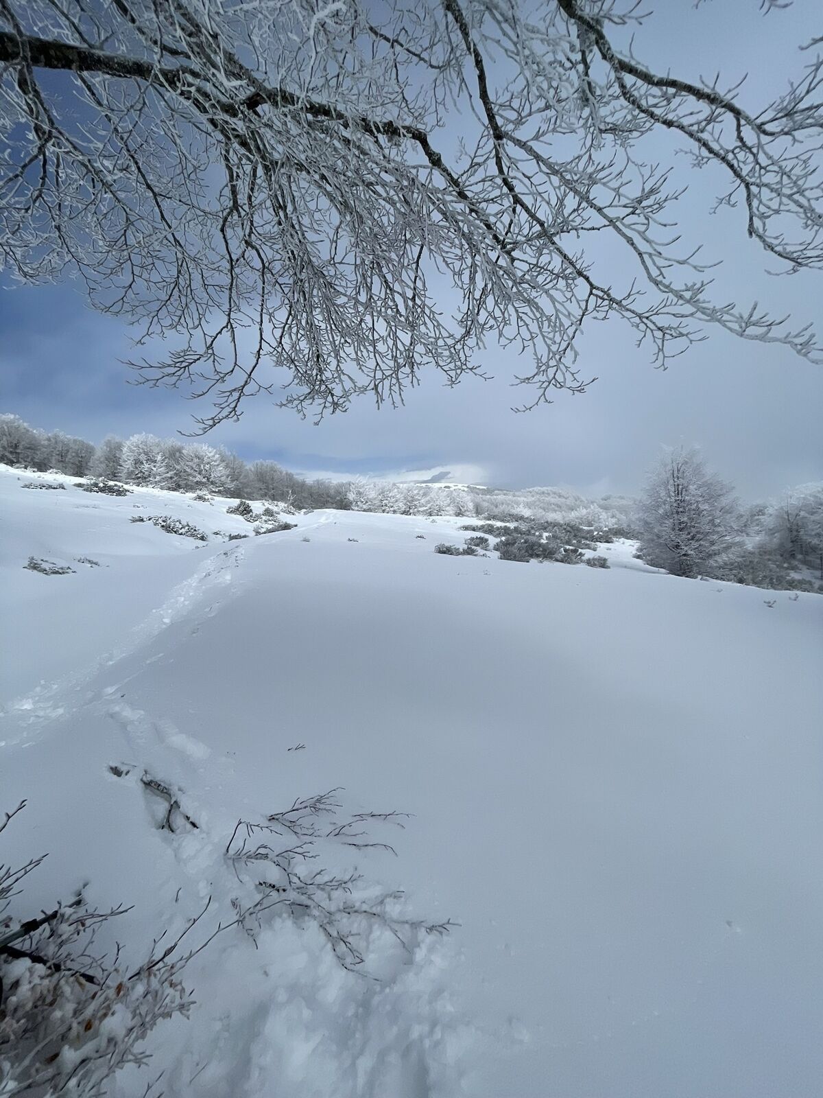 Sotto e sopra la neve, con ghiaccio e vento al Pratomagno