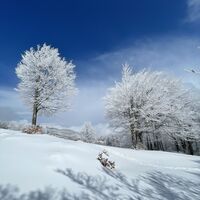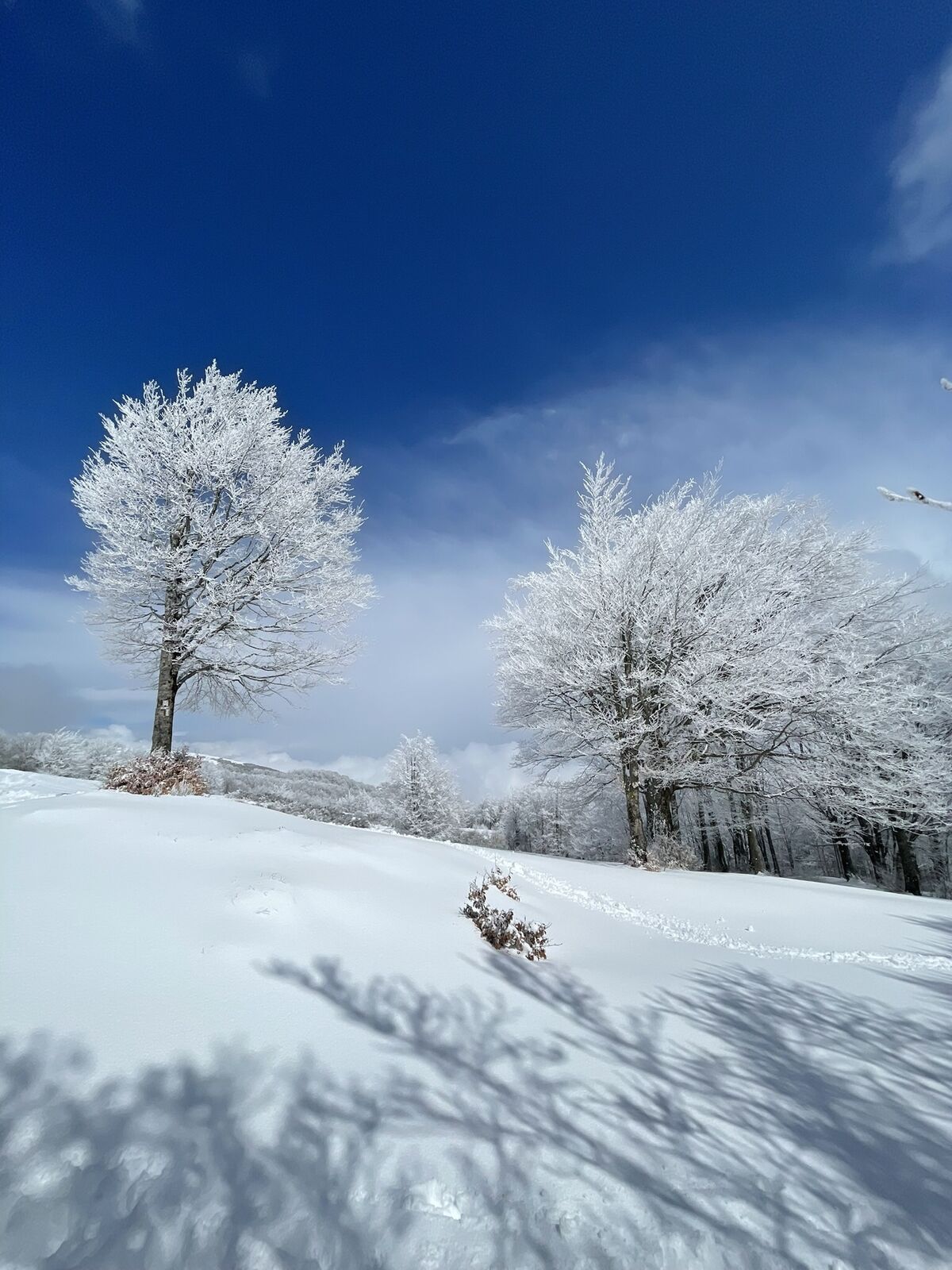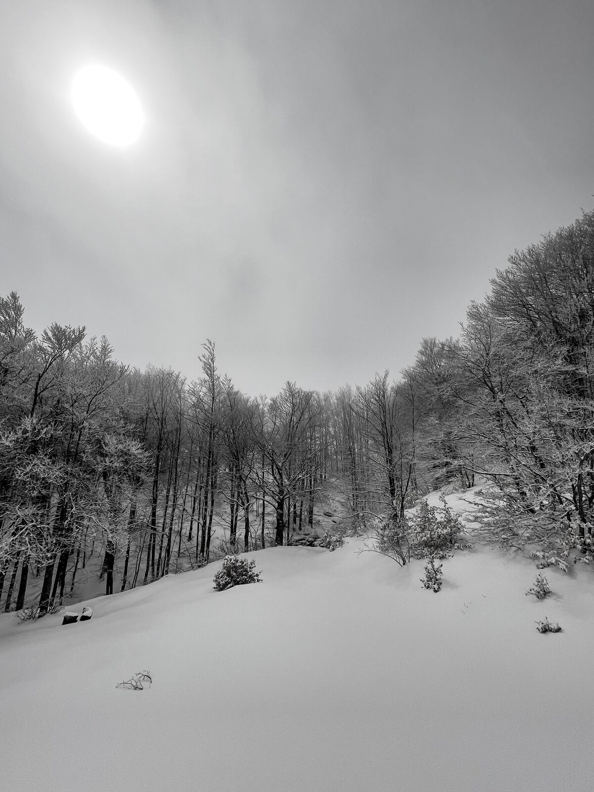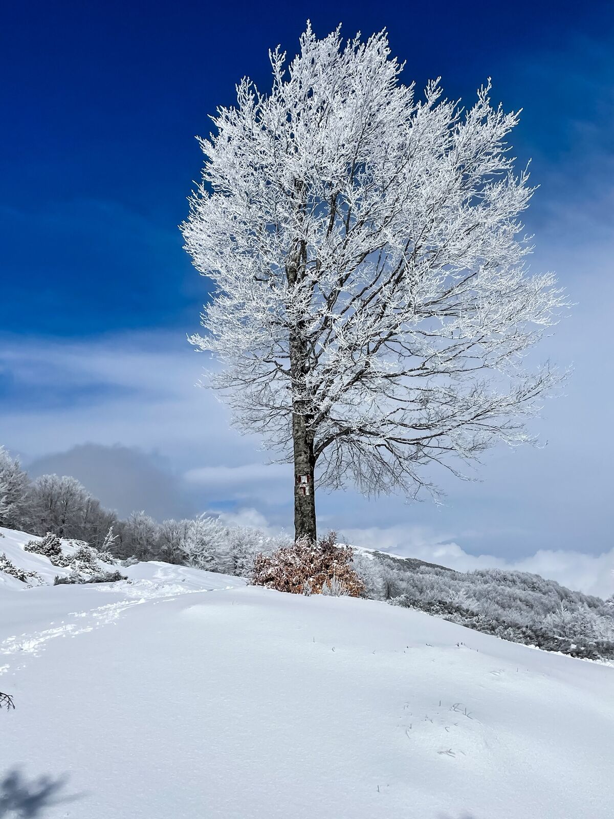 Sotto e sopra la neve, con ghiaccio e vento al Pratomagno