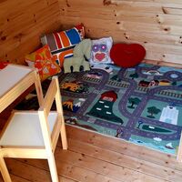 The "Ferienhaus Ottenschlag" is actually a small holiday villa, with 3 bedrooms, living room, dining room, eat-in kitchen, wintergarden, bathroom, 2 toilets, infra red sauna and a big fenced in garden with a small wooden house for children to play in.