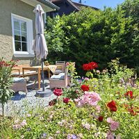 Beach volleyball, football, a playground, tennis courts, shops, coffee houses - everything in walking distance, close to our holiday home.