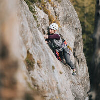 Der Klettersteig besteht aus steilen Platten, Türmen und Scharten und führt über Passagen von A-D direkt zum Gipfel. Die schroffen Felsspitzen aus Kalkgestein haben einen dolomitenähnlichen Charakter. Highlights am Weg: Spreizschritt über eine tiefe Rinne, der Klemmblock-Kamin und der Ausstiegsgrat. Vom Gipfel hat man einen atemberaubenden Ausblick auf die umliegende Bergwelt, ins Stubaital und ins Gschnitztal.